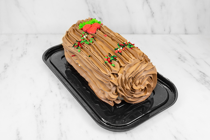 Peppermint Ice Cream roll topped with fudge and crunchies, chocolate coating and buttercream frosting! VERY Limited!