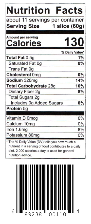 This sourdough-based loaf is made of organic wheat flour and a moist blend of organic whole grains: wheat, flax, barley, oat, millet, corn & rye, sweetened slightly with dates.