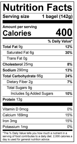 Flour, Water, Asiago Cheese, Malt Powder, Brown Sugar, Salt, Yeast, Bagel Improver (Wheat, Mono & Diglycerides, Ascorbic Acid, Enzymes), Wheat Gluten. Contains: Wheat, Dairy