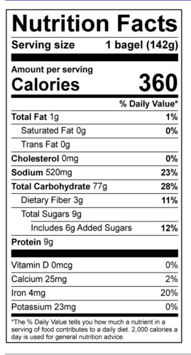 Flour, Water, Sesame Seeds, Poppy Seeds, Kosher Salt, Dehydrated Garlic, Malt Powder, Brown Sugar, Salt, Yeast, Bagel Improver (Wheat, Mono & Diglycerides, Ascorbic Acid, Enzymes), Wheat Gluten. Contains: Wheat, sesame