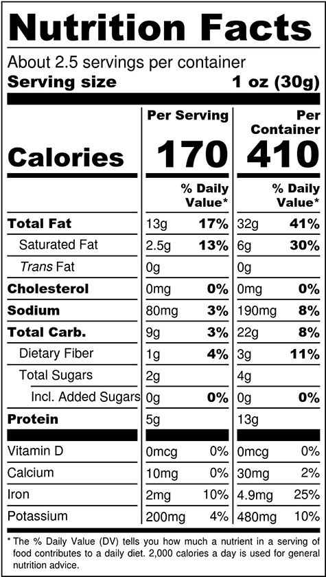 Cashews, olive oil, sea salt, rosemary