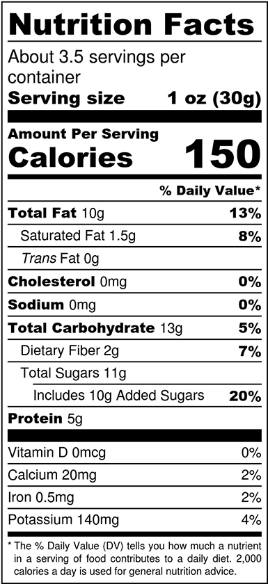 Peanuts, raw organic cane sugar, vanilla, cinnamon