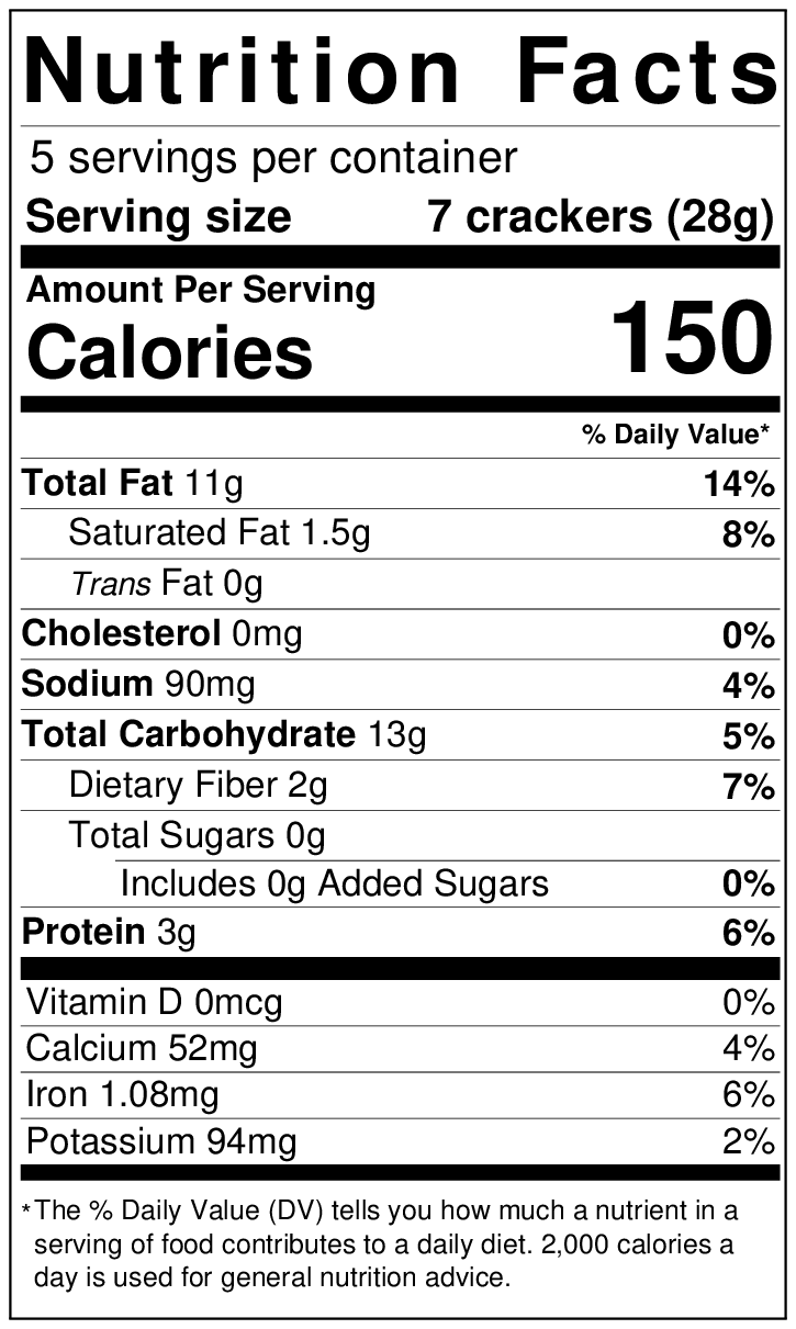 Ingredients: Top seedz seed mix (sesame seeds, sunflower seeds, flax seeds, pumpkin seeds) cornstarch, extra virgin olive oil, sea salt